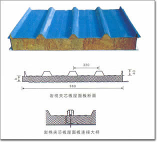岩棉彩钢夹芯板主要参数: